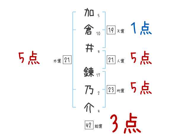 外運![]() | 加倉井錬乃介さんの外運は21画の5つ星!統率力がある。独立し成功する。名誉を手に入れる。 生活面を象徴する運勢です。外部から受ける影響力を表し、結婚運、家庭運や職場、環境への順応性を表します。 |