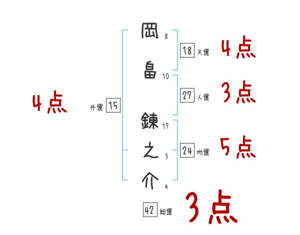岡畠錬之介さんの画数の鑑定結果
