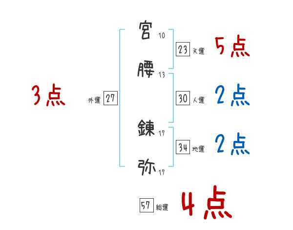 家系が持つ宿命的な運勢を表します。祖先から受け継いだ苗字ですので自分の力が及びません。家柄を象徴します。