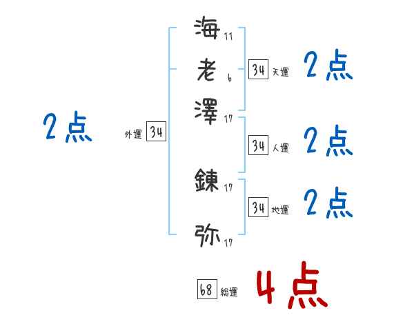 総運![]() | 海老澤錬弥さんの総運は68画の4つ星!潜在能力が高く集中力が高い。勤勉に励み発展する。 あなたの人生を表す1番重要な運勢です。生涯を通じて影響する総合運となり、主に50歳以降の晩年期に影響を及ぼします。 |