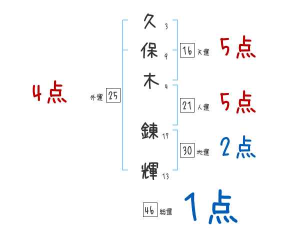 人運![]() | 久保木錬輝さんの人運は21画の5つ星!統率力がある。独立し成功する。名誉を手に入れる。 性格や才能などを表す2番目に重要な運勢です。人間関係や協調性、社会的な成功に影響します。主に20歳から50歳ぐらいまでの中年期の運勢を表します。 |