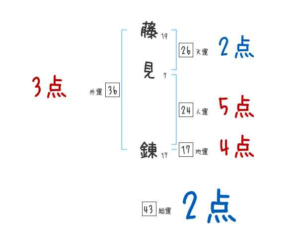 外運![]() | 藤見錬さんの外運は36画の3つ星!先見性が豊かです。多少神経質で苦労することも。 生活面を象徴する運勢です。外部から受ける影響力を表し、結婚運、家庭運や職場、環境への順応性を表します。 |