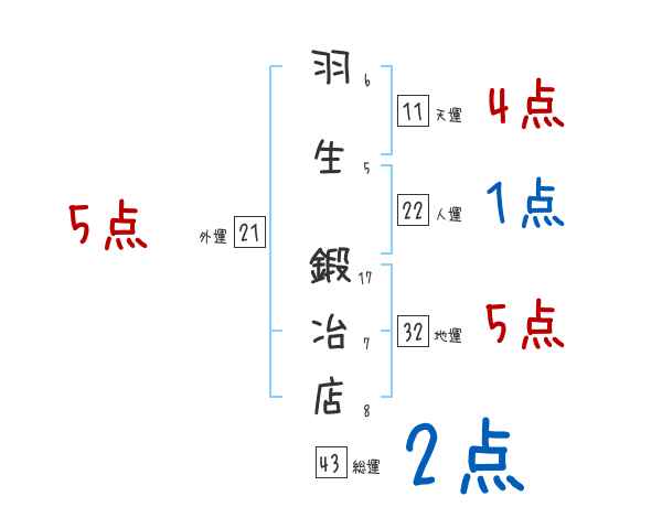 羽生鍛冶店さんの画数の鑑定結果