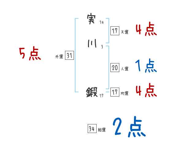 実川鍛さんの総運は34画の2つ星