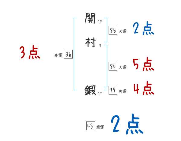 関村鍛さんの画数の鑑定結果