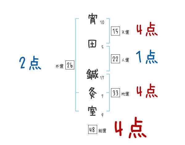 天運![]() | 宵田鍼灸室さんの天運は15画の4つ星!人徳があり出世する。順調に物事を進め円満な人生。 家系が持つ宿命的な運勢を表します。祖先から受け継いだ苗字ですので自分の力が及びません。家柄を象徴します。 |