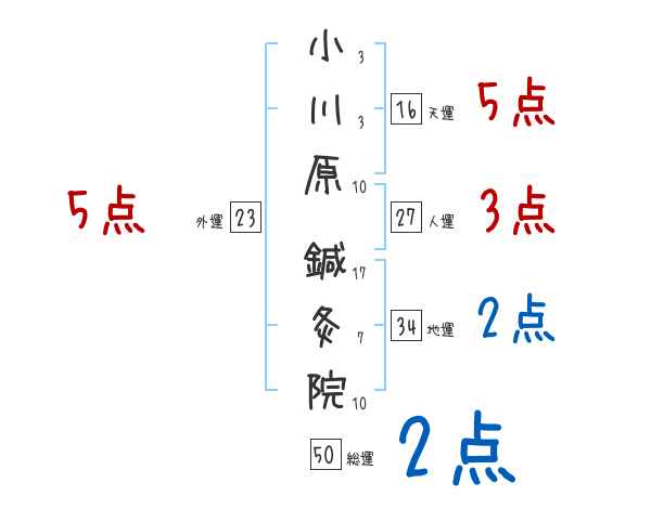 小川原鍼灸院さんの画数の鑑定結果