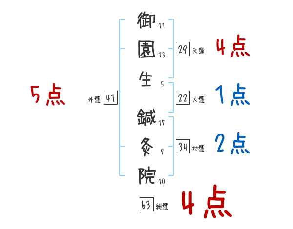 御園生鍼灸院さんの画数の鑑定結果