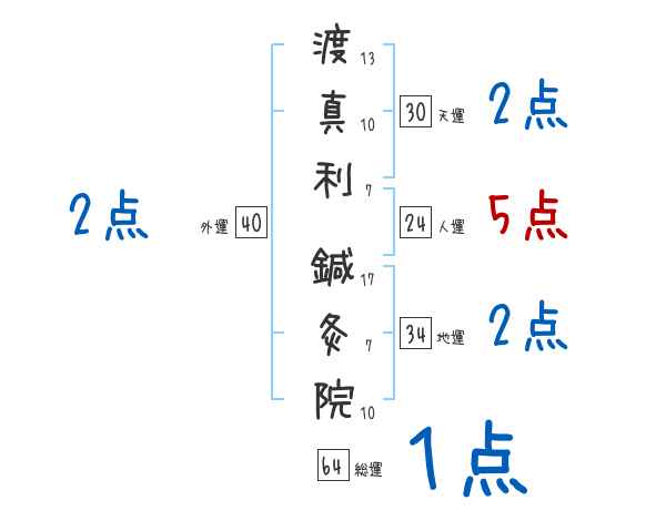 渡真利鍼灸院さんの画数の鑑定結果