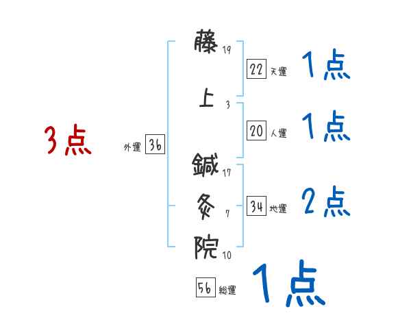 人運![]() | 藤上鍼灸院さんの人運は20画の1つ星!社交が苦手。人とは違った才能があり波乱万丈な人生かも。 性格や才能などを表す2番目に重要な運勢です。人間関係や協調性、社会的な成功に影響します。主に20歳から50歳ぐらいまでの中年期の運勢を表します。 |