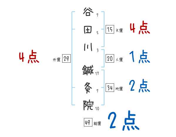 谷田川鍼灸院さんの画数の鑑定結果
