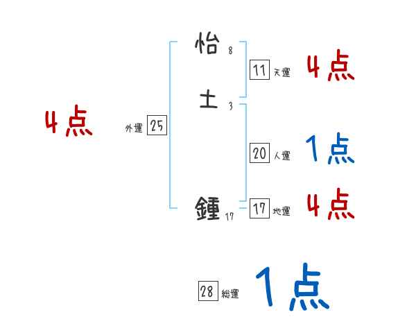 怡土鍾さんの画数の鑑定結果
