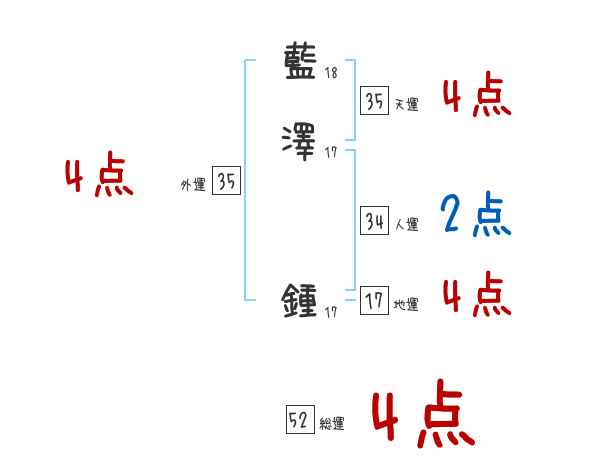 藍澤鍾さんの画数の鑑定結果