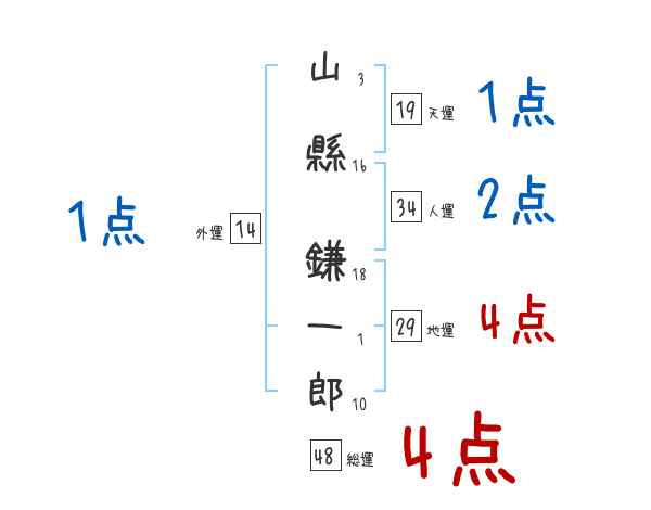 総運![]() | 山縣鎌一郎さんの総運は48画の4つ星!賢明な性格で人望が厚い。指導力があり多くの人に尊敬される。 あなたの人生を表す1番重要な運勢です。生涯を通じて影響する総合運となり、主に50歳以降の晩年期に影響を及ぼします。 |