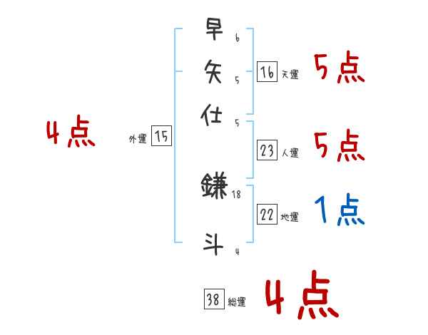 外運![]() | 早矢仕鎌斗さんの外運は15画の4つ星!人徳があり出世する。順調に物事を進め円満な人生。 生活面を象徴する運勢です。外部から受ける影響力を表し、結婚運、家庭運や職場、環境への順応性を表します。 |