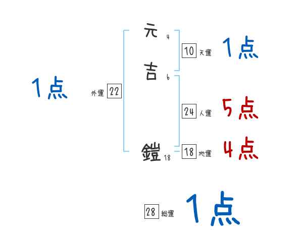 元吉鎧さんの画数の鑑定結果