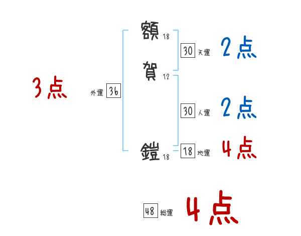 額賀鎧さんの画数の鑑定結果