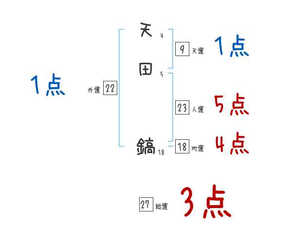 天運![]() | 天田鎬さんの天運は9画の1つ星!消極的で才能を発揮することが苦手なことも。周りの意見に耳を傾けましょう。 家系が持つ宿命的な運勢を表します。祖先から受け継いだ苗字ですので自分の力が及びません。家柄を象徴します。 |