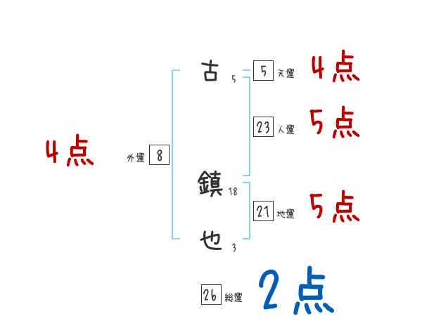 古鎮也さんの画数の鑑定結果
