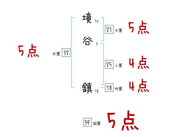境谷鎮さんの画数の鑑定結果