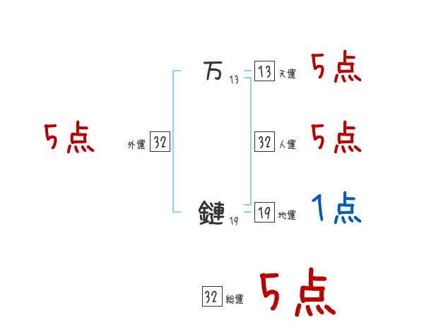 万鏈さんの画数の鑑定結果
