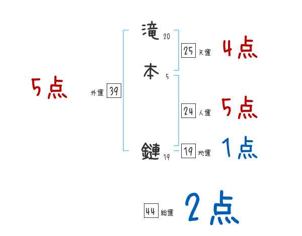 天運![]() | 滝本鏈さんの天運は25画の4つ星!個性があり才能があふれる。強運の持ち主で発展する。 家系が持つ宿命的な運勢を表します。祖先から受け継いだ苗字ですので自分の力が及びません。家柄を象徴します。 |
