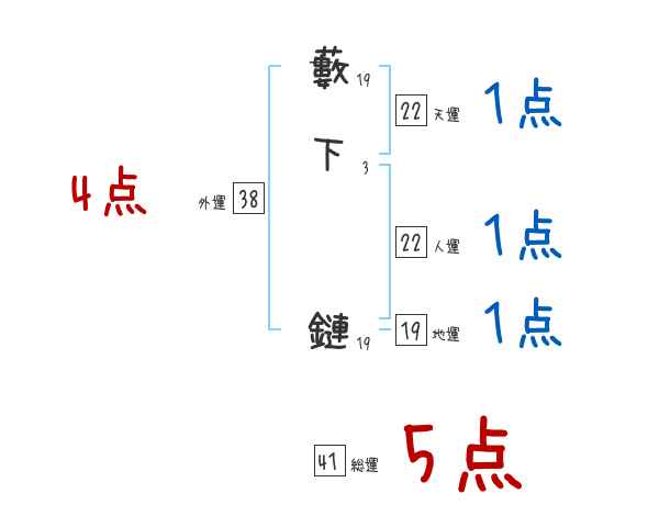 藪下鏈さんの画数の鑑定結果