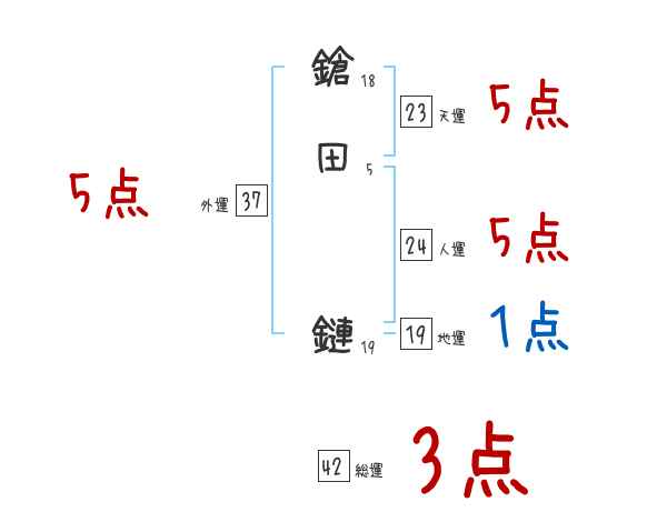 鎗田鏈さんの画数の鑑定結果