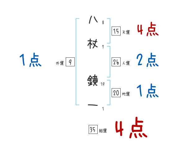 八杖鏡一さんの画数の鑑定結果