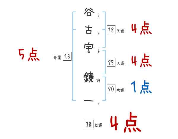 谷古宇鏡一さんの画数の鑑定結果
