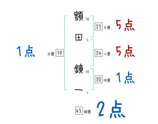 総運![]() | 額田鏡一さんの総運は43画の2つ星!頑固な性格で独立心が強いかも。やや非現実的で浪費に注意しましょう。 あなたの人生を表す1番重要な運勢です。生涯を通じて影響する総合運となり、主に50歳以降の晩年期に影響を及ぼします。 |