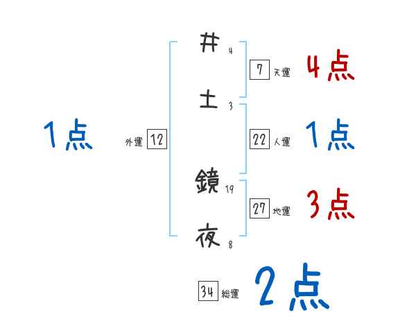 天運![]() | 井土鏡夜さんの天運は7画の4つ星!強い意志や信念を持ち独立心が強い。自立する。 家系が持つ宿命的な運勢を表します。祖先から受け継いだ苗字ですので自分の力が及びません。家柄を象徴します。 |