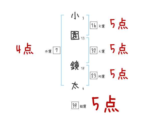 小園鏡太さんの画数の鑑定結果
