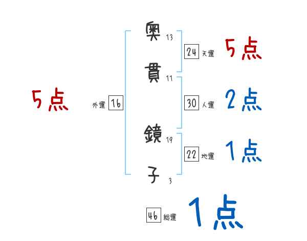 奥貫鏡子さんの画数の鑑定結果