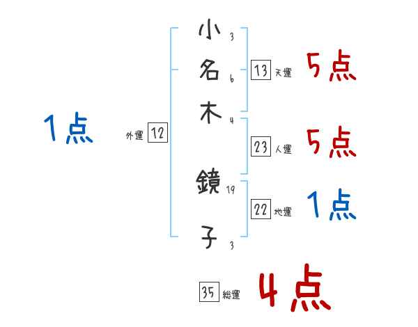 小名木鏡子さんの画数の鑑定結果