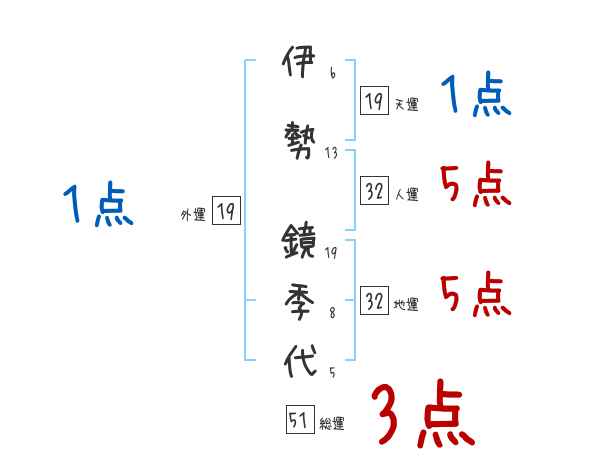 地運![]() | 伊勢鏡季代さんの地運は32画の5つ星!柔軟性があり成功する。チャンスが多く金運が良い。 個性を表す基礎的な運勢です。性格形成や対人関係、行動力など家庭環境に影響されます。主に誕生してから20歳くらいまでの若年期の運勢を表します。 |