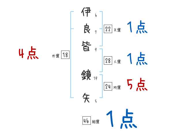 人運![]() | 伊良皆鏡矢さんの人運は28画の1つ星!家庭環境に注意。スポーツで活躍できる能力があるかも。 性格や才能などを表す2番目に重要な運勢です。人間関係や協調性、社会的な成功に影響します。主に20歳から50歳ぐらいまでの中年期の運勢を表します。 |
