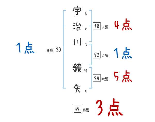 宇治川鏡矢さんの画数の鑑定結果