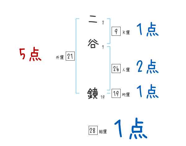 二谷鏡さんの画数の鑑定結果