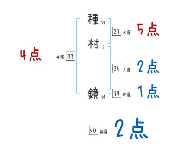 種村鏡さんの画数の鑑定結果