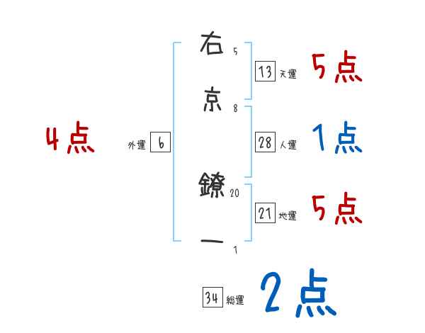天運![]() | 右京鐐一さんの天運は13画の5つ星!才能に恵まれ人気がある。名声を手に入れる。円満な人生。 家系が持つ宿命的な運勢を表します。祖先から受け継いだ苗字ですので自分の力が及びません。家柄を象徴します。 |