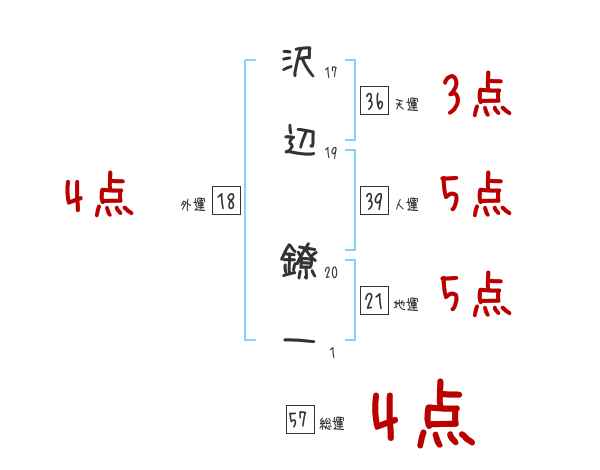 沢辺鐐一さんの画数の鑑定結果