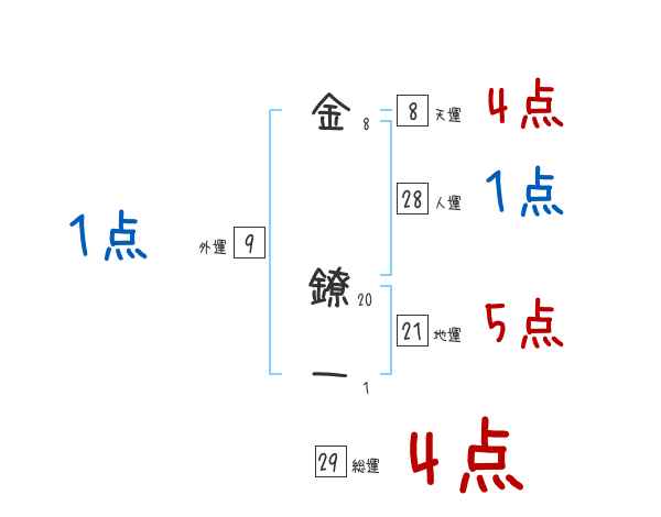 金鐐一さんの画数の鑑定結果