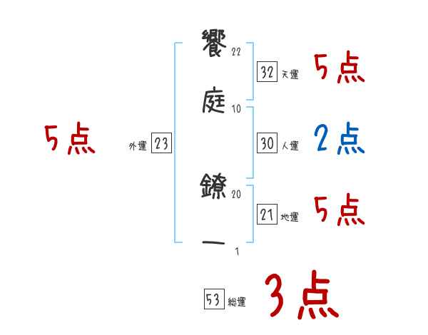 饗庭鐐一さんの総運は53画の3つ星