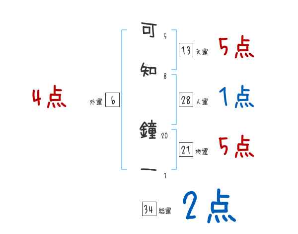 可知鐘一さんの画数の鑑定結果