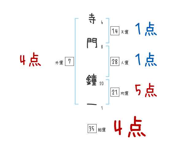 外運![]() | 寺門鐘一さんの外運は7画の4つ星!強い意志や信念を持ち独立心が強い。自立する。 生活面を象徴する運勢です。外部から受ける影響力を表し、結婚運、家庭運や職場、環境への順応性を表します。 |
