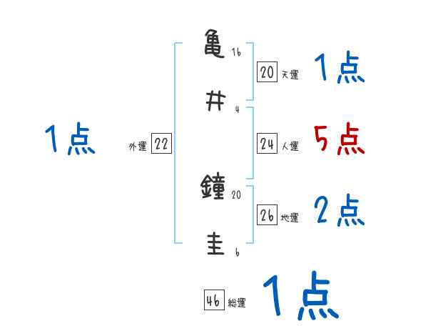 亀井鐘圭さんの画数の鑑定結果