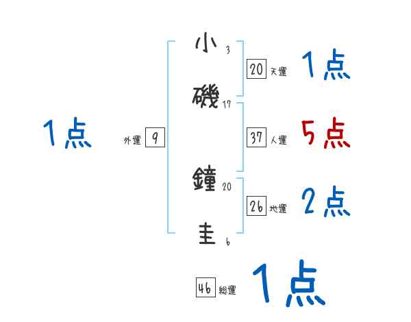 小磯鐘圭さんの画数の鑑定結果
