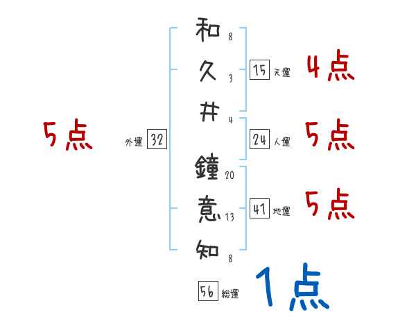 和久井鐘意知さんの画数の鑑定結果