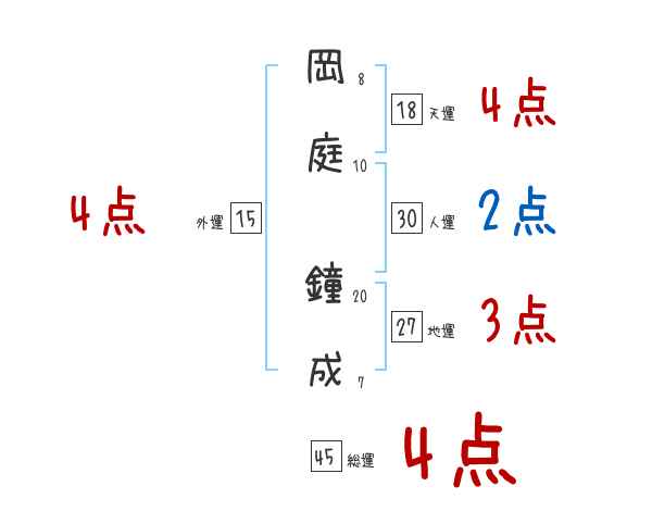 岡庭鐘成さんの画数の鑑定結果